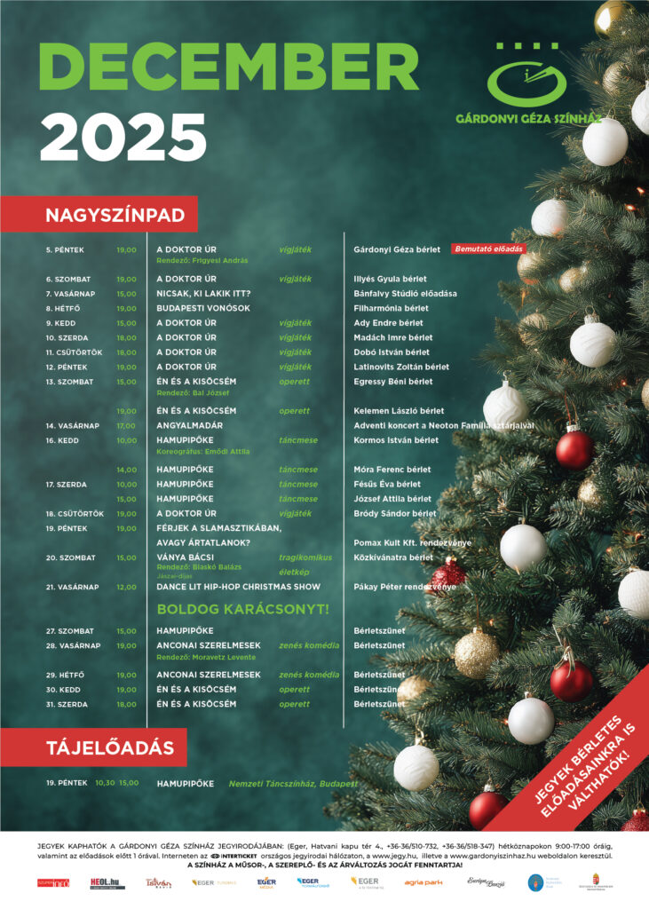 Legyen szó családi kikapcsolódásról, időtlen klasszikusról vagy nevetéstől könnyes komédiáról, színházunk decemberben szinte minden napra tartogat valami különlegeset.